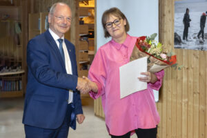 Marjun Vinter Ellingsgaard varð heiðrað á hugnaligari samkomu í Velbastaðar skúla, har hon hevur starvast í góð 25 ár. Borgarstjórin helt røðu fyri Marjuni og handaði henni gávu fyri trúgva og drúgva tænastu.