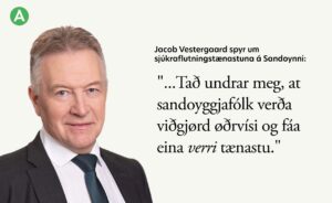 Hetta er sera løgið, og tykist eisini órættvíst. Serliga tá hugsað verður um, hvussu viðgerðin av øðrum staðsetingum í Føroyum hevur verið, tá talan er um sjúkraflutningstænastu.