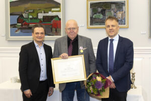Petur Skeel Nolsøe fekk í gjár handað heiðurstekin Tórshavnar Býráðs. Tað var Heðin Mortensen, borgarstjóri, sum handaði Peturi heiðurstekin og heiðursbræv.
