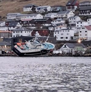 Tá menn vóru í holt við at taka skipið upp, 19 desembur, hendi eitt óhapp so skipið koppaði á SB síðu.