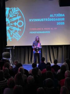 Nógv fólk vóru savnað í Perluni leygarkvøldið 8. marstil stóra tiltakið “Altjóða Kvinnustríðsdagur 2025”, sum Femifagnaðurin skipaði fyri.