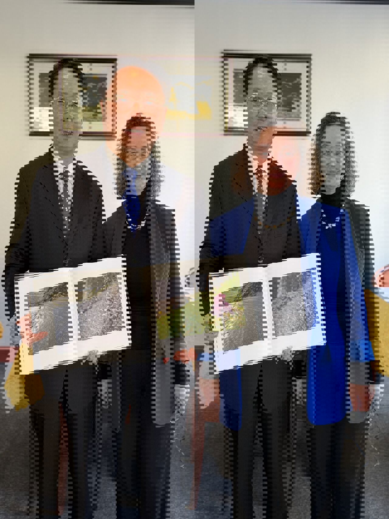 Mynd: Sirið Stenberg, landsstýriskvinna, og Xuefeng Wang, kinverski sendimaðurin í Keypmannahavn