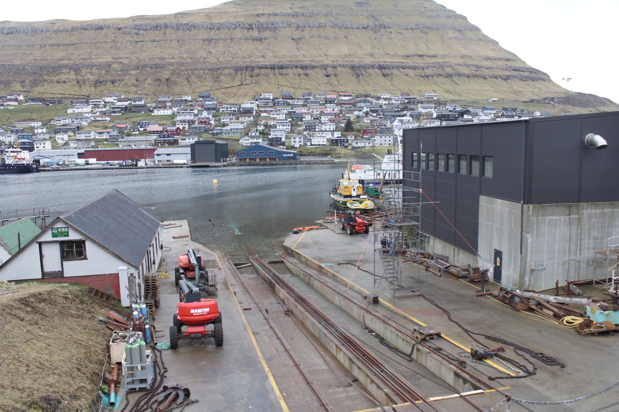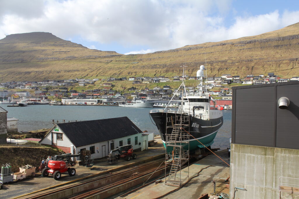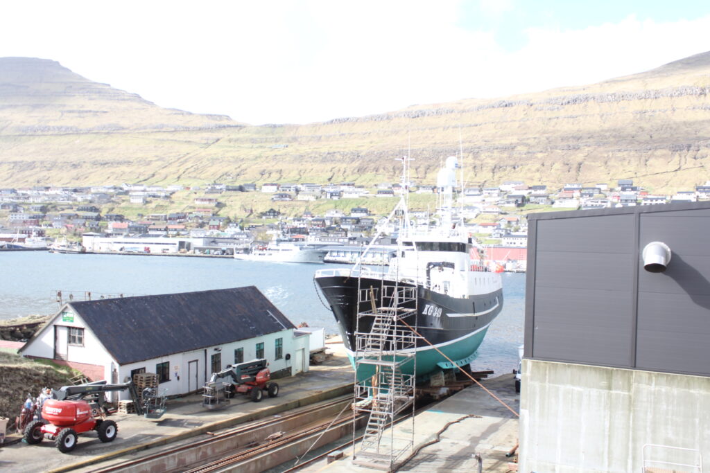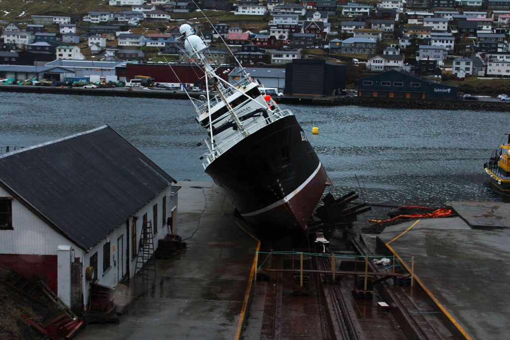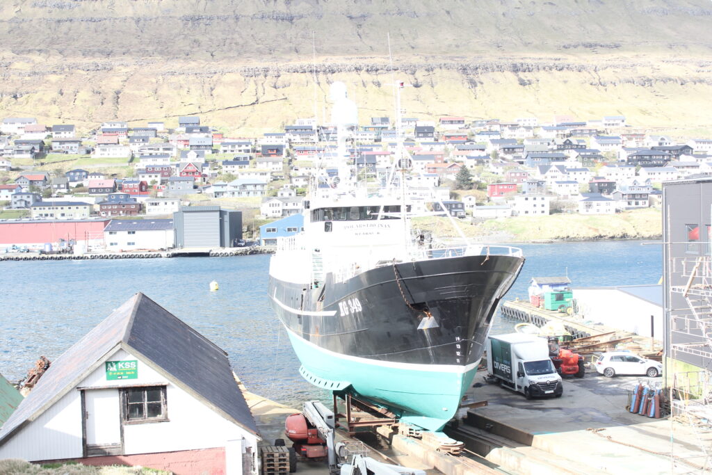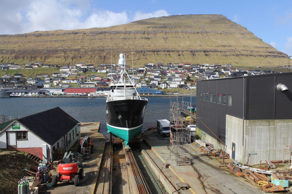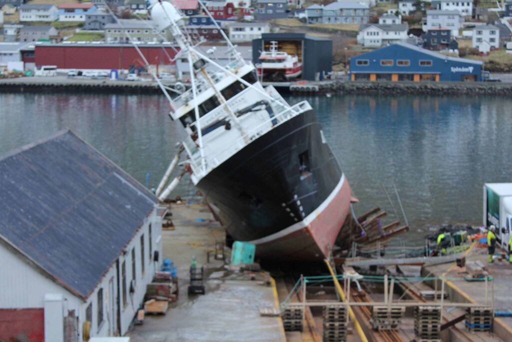 Tann 25 februar stóð POLARSTJØRNAN aftur á beint á bedingsvogninum og fóru starvsfólk tá í gongd við at gera ymiskt viðlíkahalds arbeiðir og skipið bleiv eisini mála. So nú er klárt hjá frystilínuskipinum M/S POLARSTJØRNUNI rigga til at fara aftur til fiskiskap. Myndir: 24.FO