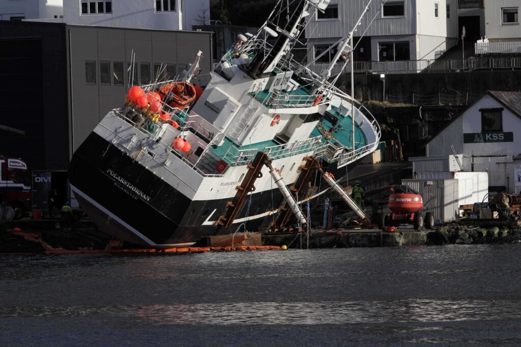 Tá skipið bleiv tikið uppá beding áðrenn jól, hendi eitt óhapp sum førdi til at skipið koppaði á bedingsvogninum. Serkøn fólk komu úr Danmark sum skuldi hjálpa til við at fáa skipið aftur á rættkjøl. Umframt serfrøðingar úr Danmark luttók eisini fólk frá Føroyskari kavingarfyritøku. Frimodt Rasmussen stjóri sigur, at frá KSS hava tað eisini veri einir 4 til 6 mans sum hava hjálpt til við arbeiðinum.