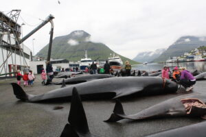 Í gjár løgdu 246 hval beinini í Leynum. Sýslumaðurin hevur avgjørt at býta part av grindini í heimapartar í Norðstreymoy.