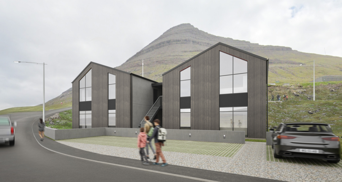 Talan er um íbúðir við framúr útsýni, har tað eru tvey kømur, køkur/stova, vesi, gongd, tøknirúm, umframt skúrar. Byggingin er uppdeild í tveir bygningar, ið eru knýttir saman av eini trappugongd, sum gevur lívd og eitt rúm sum íbúgvarnar eru felags um.