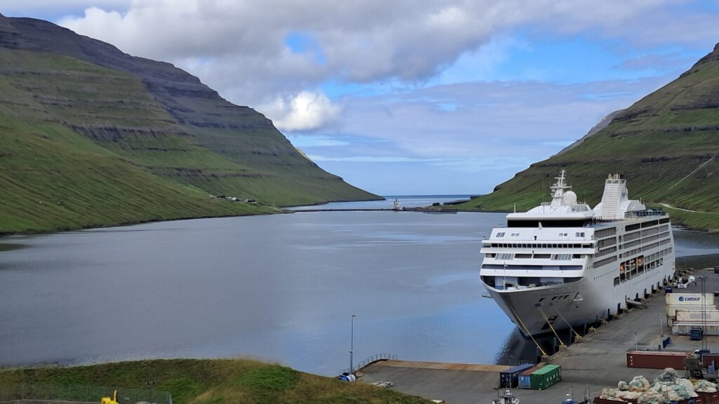 Í góðveðrinum í morgum stevndi M/S SEVEN SEAS MARINER inn á Norðhavnina skipið verður líggjandi í Klaksvík til klokkan 23 í kvøld.