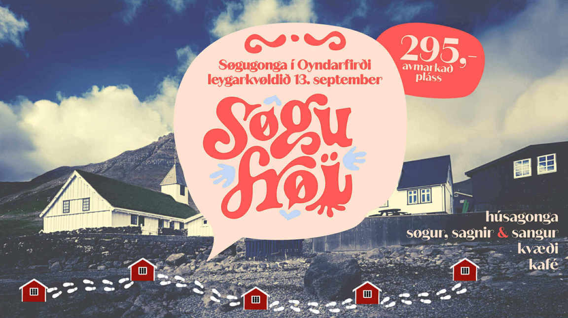 Leygarkvøldið 13. september verður hugnaliga bygdin Oyndarfjørður aftur karmur um Søgugonguna, sum hevur til endamáls at kveikja hugin at lurta eftir søgum og menna kynstrið at siga frá søgum. Tíggju kvinnur og menn fara at siga frá søgum í seks ymiskum støðum, og fyri at hoyra tær ymisku søgurnar verður gingið hús úr húsi.