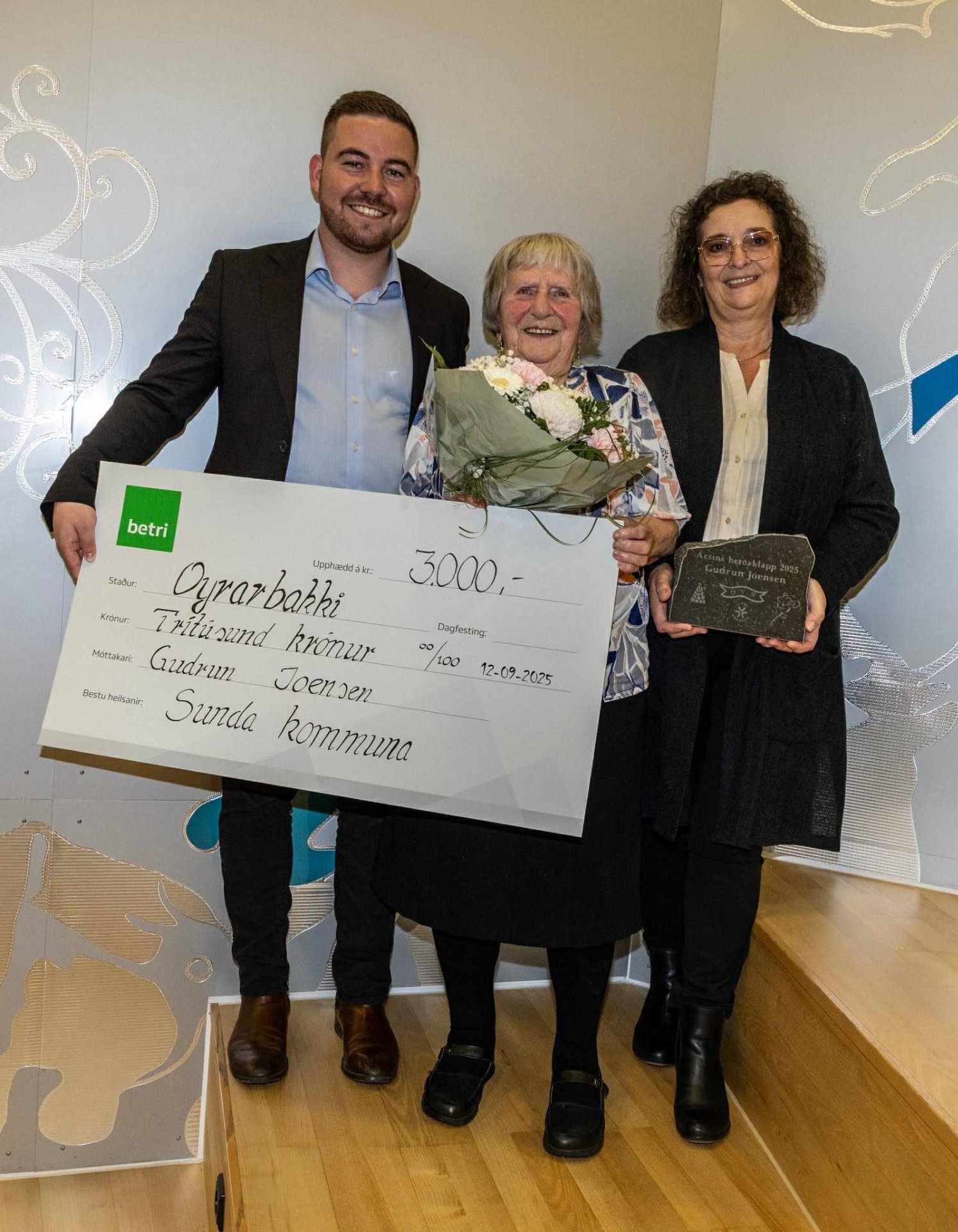 95 ára gamla Gudrun Joensen úr Hósvík fekk ársins herðaklapp 2025.