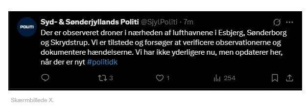 Dr.DK sigur víðari, at talen er um fleiri enn eina dronu og tey vita ikki hvar dronurnar koma frá.