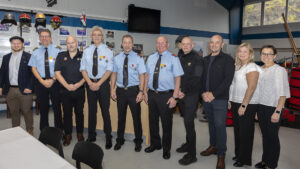 Á myndini frá vinstru: Bergur Robert Dam Jensen (formaður í teknisku nevnd hjá Tórshavnar býráði), Heini Østerø (sløkkiliðsleiðari), Eigil Olsen, Birgir Davidsen, Rúni Árting, Ólavur Rasmussen, Ólavur Midjord, Sigurð Hansen, Ann W. Rubeksen og Elsa Thorkildshøj.