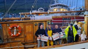 Í góðveðrinum í kvøld komu bátarnir aftur at landi og var samlaða veiðan 5.400 pund. Veiðan verður seld og innkomni peningurin fer til at viðlíkahalda skúlaskipið M/B DRAGIN